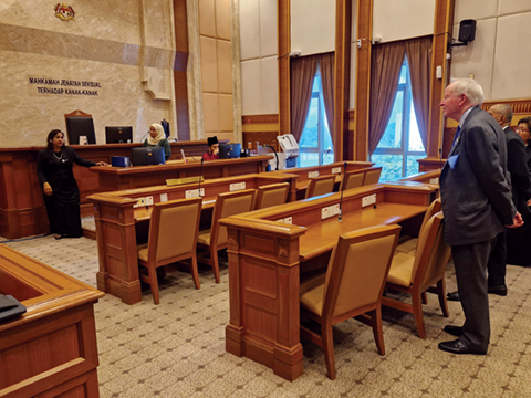 The Treasurer also visited the Palace of Justice in Putrajaya, where he was briefed on the workings of the Court and the Registry for Sexual Offences Against Children; observed a Court of Appeal hearing on employment laws; toured the Judicial Museum; and was welcomed into Master Jamaludin’s chambers.