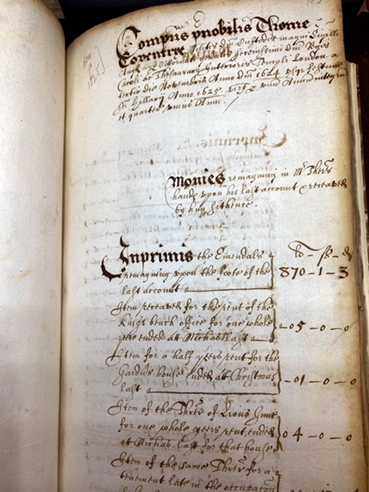 Account of Thomas Coventry, Treasurer from 3 November 1624 to the Feast of Hilary 1625–6, being one year and a quarter.